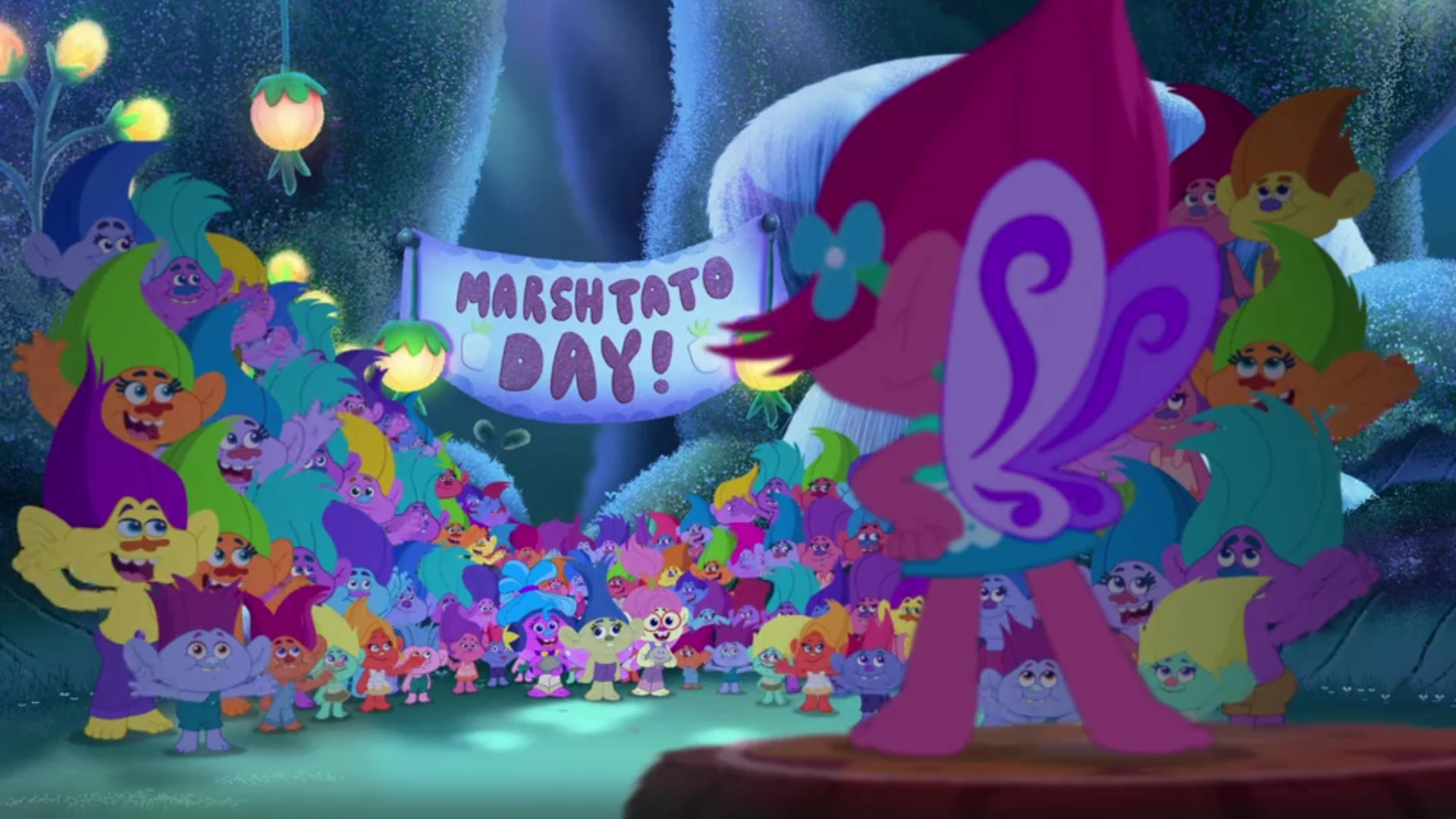 Branch tries to prove that the Marshtato Fairy is non-existent while Poppy tries to put some Marshtato spirit in him.