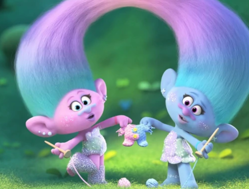 The twins are into fashion and make their own gowns, as well as outfits for other Trolls.