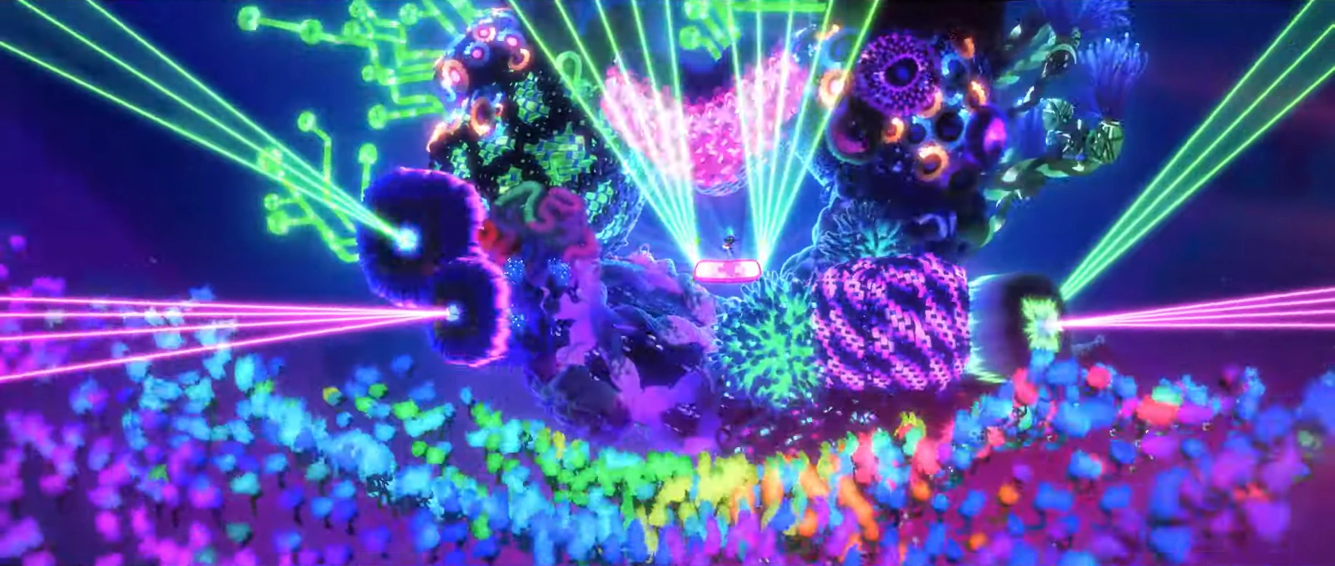 The Techno Trolls' world is one of living, neon colors against a dark oceanic floor. They're playful and carefree, and have a similar attitude to life as the Pop Trolls (both living for peace, love and harmony). They live in Techno Reef. Their ruler King Trollex resides in a LED castle.