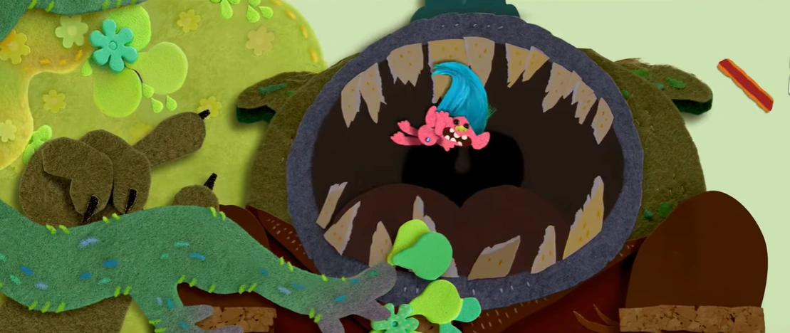 Poppy is kept safe throughout the escape in Peppy's hair. In Trolls: The Beat Goes On!, Branch is mentioned to have also been in this event.
