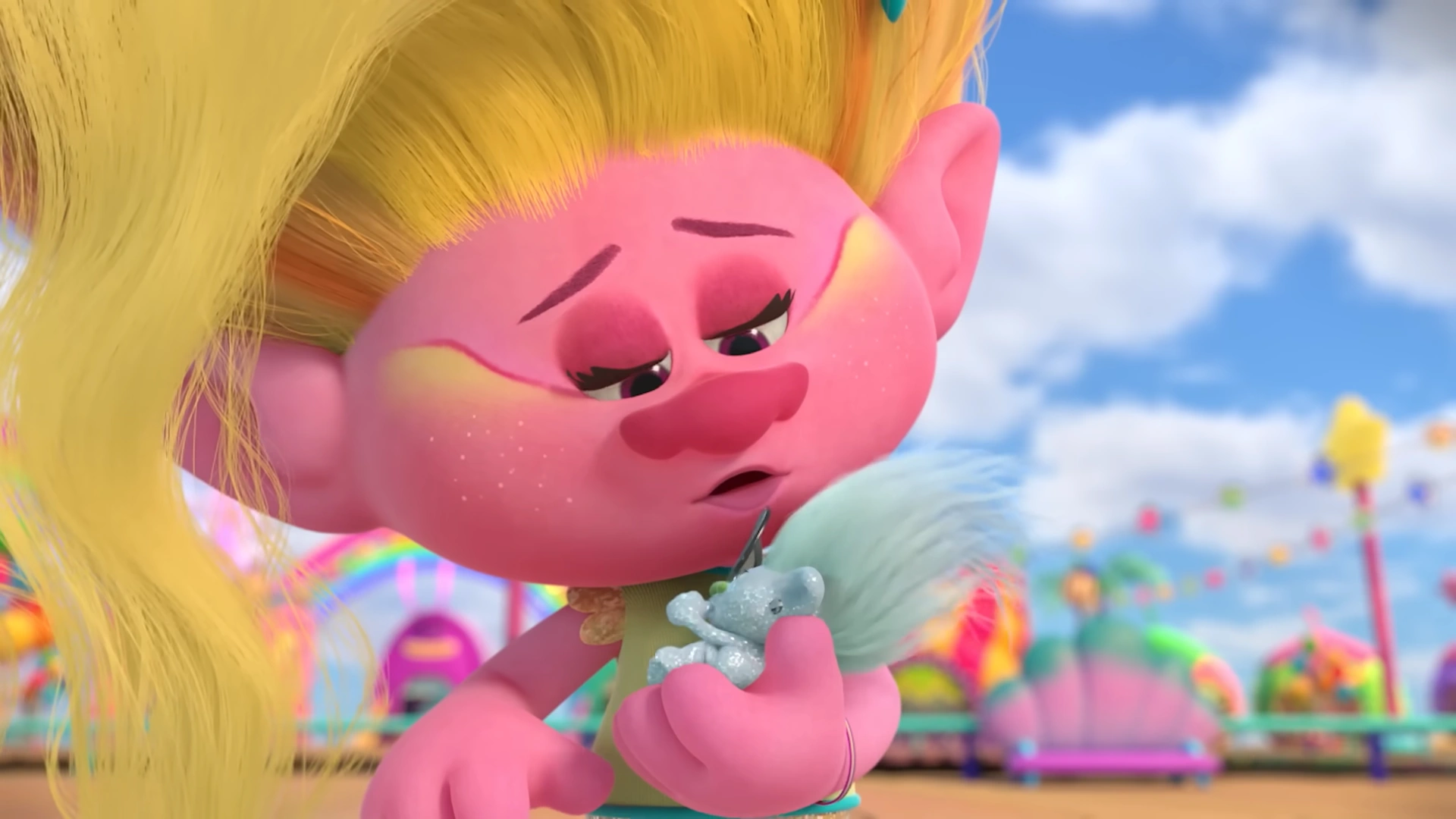 The trauma that she had endured also caused her to become obsessed in keeping her loved ones safe, even if it means trapping them, or hiding her pain through an exuberant exterior. By the end of Trolls Band Together, she had overcome her past traumas.